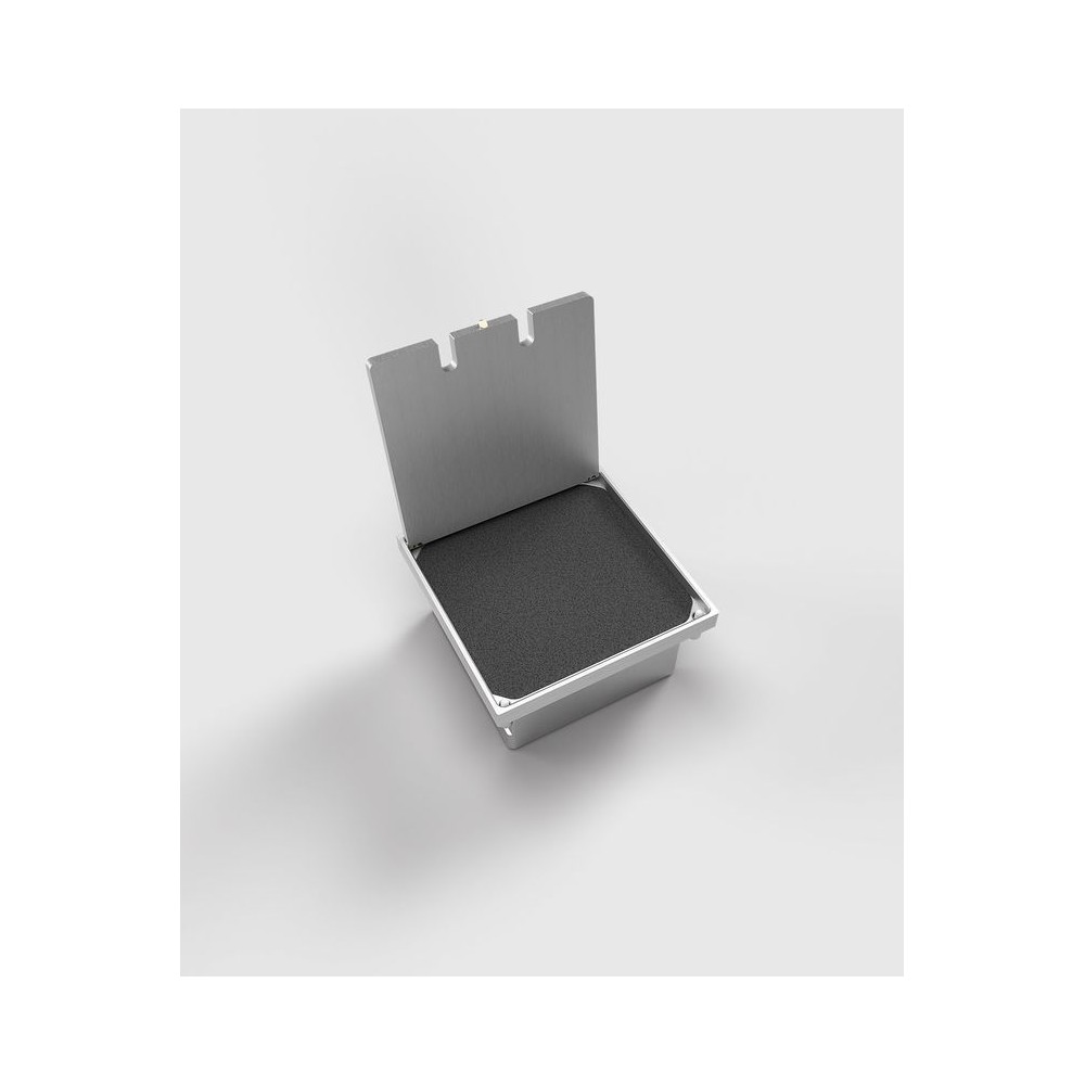 Bodensteckdose 8302A aus massivem Aluminium mit verschließbarem Klappdeckel. Einfaches Öffnen und Schließen des Deckels durch einen im Deckel integrierten Schnappverschluss. Geschlossen ist die Bodensteckdose durch die einlegbare Deckeldichtung spritzwassergeschützt und somit für auch für Nasskehrgeräte geeignet. Rahmen und Deckeloberfläche in Alu-Natur eloxiert. Weitere Farben und Bestückungsvarianten auf Anfrage.