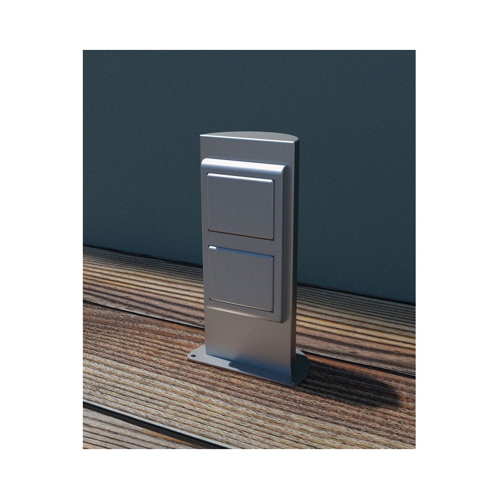 Energiesäule ES301 für 2 Einheiten. Aufgrund der Schutzart IP 44 ist die Energiesäule spritzwassergeschützt. Das Gehäuse besteht aus massivem Edelstahl. Das Material ist glasperlengestrahlt. Die Steckdoseneinsätze verfügen über ein VDE-Zeichen. Die Einbaueinheit ist für den Aussenbereich geeignet! Weitere Bestückungsvarianten auf Anfrage.