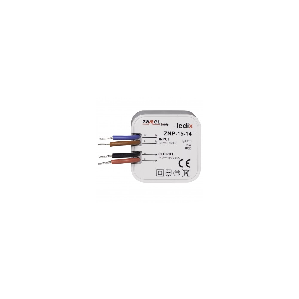 Netzteil ZNP-15-14 ist ein professioneller Impuls-Netzteil mit einer Spannungsregelung von 14V DC und Nennleistung von 15W zur Montage in UP-Dose.