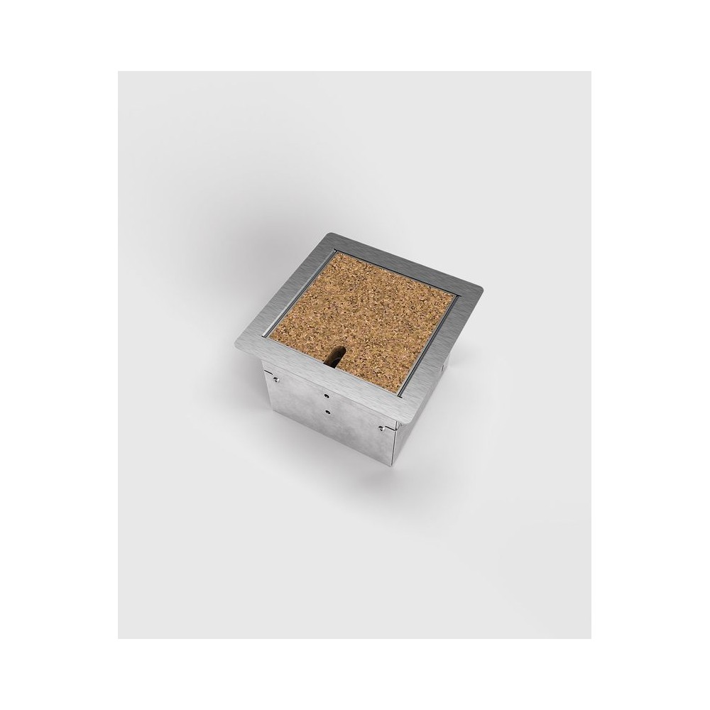 Hohlbodentank 8501B mit einem Steckplatz. Die Aufnahmebox besteht aus sendzimirverzinktem Stahlblech. Rahmen und Deckel aus Edelstahl. Der Deckel schließt auch bei gesteckten Standardsteckern in gerader oder abgewinkelter Form. Der herausnehmbare Deckel kann mit 15 mm Stein, Holz etc. belegt werden. Weitere Bestückungsvarianten auf Anfrage.