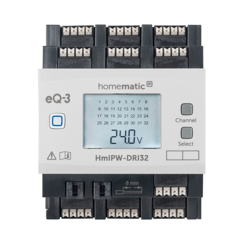 Produkteigenschaften: - Verbindet konventionelle Taster, Schalter und Kontakte mit dem Homematic IP Wired System über 32 unabhängige Eingänge - Eingänge können für Taster- und Schalter sowie für Kontakte (z. B. Reedkontakte in Fenstern) genutzt werden - Korrosionsschutz-Funktion verlängert die Lebensdauer angeschlossener Taster und Schalter - Komfortable Inbetriebnahme und Bedienung direkt am Gerät dank grossem, beleuchteten LC-Display - Einfache Montage auf Standard-Hutschienen in Haus und Unterverteilungen - Besonders einfache und schraubenlose Installation durch Federkraftklemmen und Steckverbinder für den Busanschluss - Für den Betrieb ist ein Homematic IP Wired Access Point notwendig. Das Wired-System kann über die kostenlose Homematic IP App, die WebUI der CCU3 oder über viele Partnerlösungen gesteuert werden.
