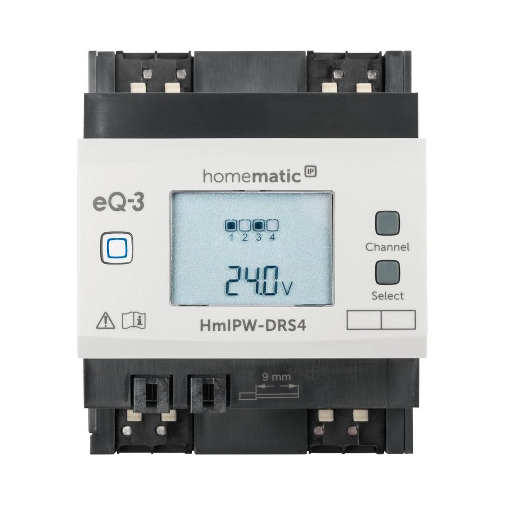 Produkteigenschaften: - Schaltet angeschlossene Verbraucher (z. B. Leuchtmittel) über vier potentialfreie, unabhängige Kanäle ein bzw. aus - Ermöglicht eine flexible Steuerung angeschlossener Verbraucher über konventionelle, drahtgebundene Taster oder Homematic IP Funk-Taster und -Fernbedienungen - Jeder Kanal kann auf eine unterschiedliche Phase gelegt werden und ermöglicht so eine unabhängige Steuerung jedes einzelnen Kanals - Komfortable Inbetriebnahme und Bedienung direkt am Gerät dank grossem, beleuchteten LC-Display - Einfache Montage auf Standard-Hutschienen in Haus und Unterverteilungen - Besonders einfache und schraubenlose Installation durch Federkraftklemmen und Steckverbinder für den Busanschluss - Für den Betrieb ist ein Homematic IP Wired Access Point notwendig. Das Wired-System kann über die kostenlose Homematic IP App, die WebUI der CCU3 oder über viele Partnerlösungen gesteuert werden.