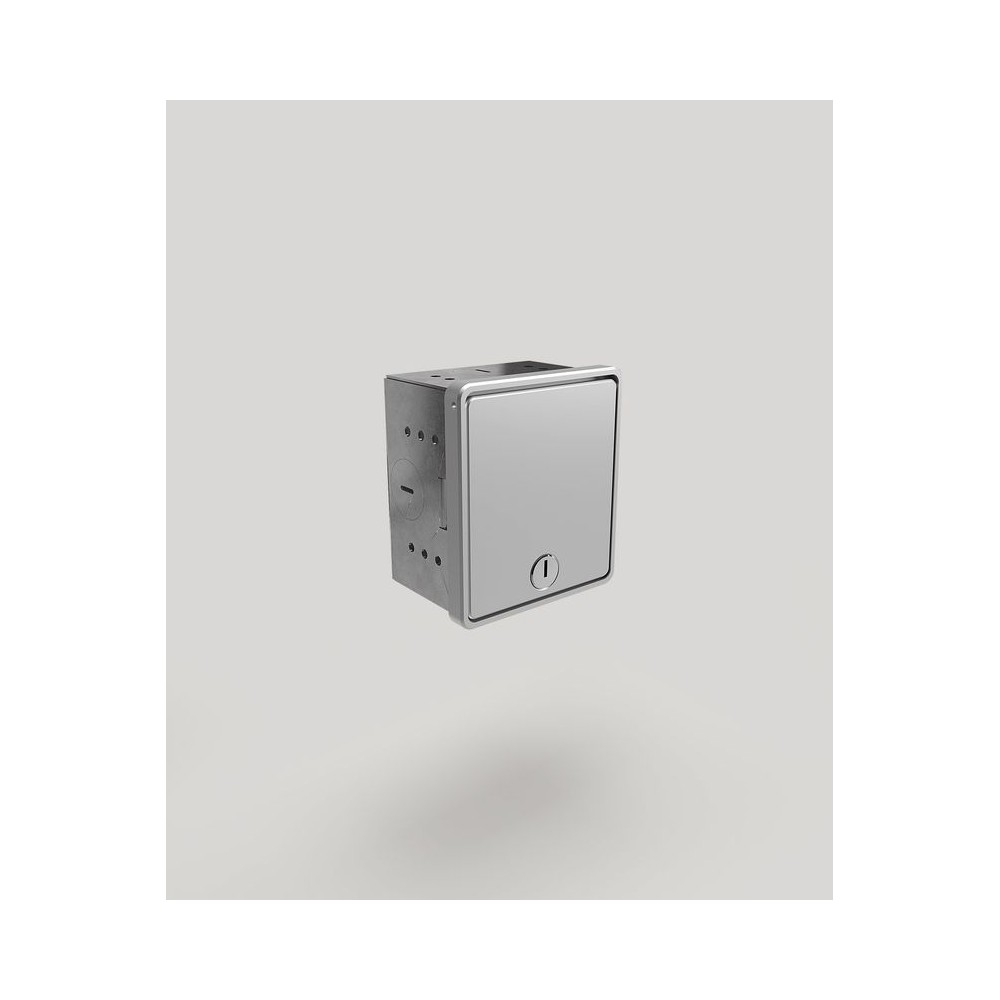 Wandsteckdose 5501A mit einem Steckplatz, spritzwassergeschützt, mit der Schutzart IP44. Der Klappdeckel ist mit einem Schlüssel verschliessbar und somit vor unberechtigter Nutzung vornehmlich geschützt. Die Aufnahmebox besteht aus sendzimirverzinktem Stahlblech. Der Rahmen und der Deckel sind aus massivem Aluminium gefertigt und in Alu-Natur eloxiert. Weitere Farben und Bestückungsvarianten auf Anfrage.