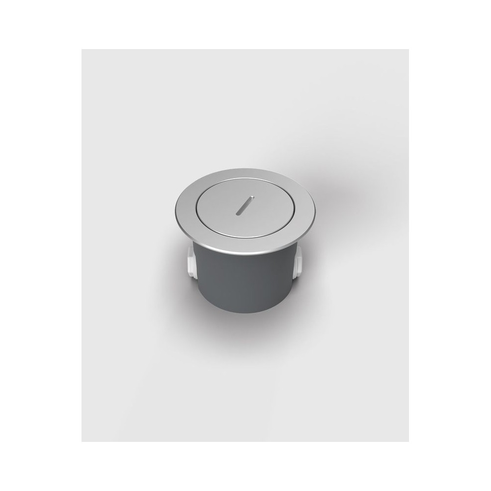 Round floor socket 7501A with screw cover. Single socket to be placed flush with the floor, made of solid PVC, grey, heavy design. The top part is made of solid aluminium and anodised in stainless steel look. The lid can be removed completely and is lockable with a special key. When properly closed, the floor socket 7501A is watertight. Further equipment variants on request.
