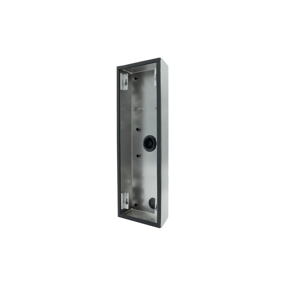 The DoorBird D2104V/D2105V/D2106V SMB is a surface-mounted box. The surface-mounted box is suitable for the IP video door intercom system D2104V / D2105V / D2106V SMB.