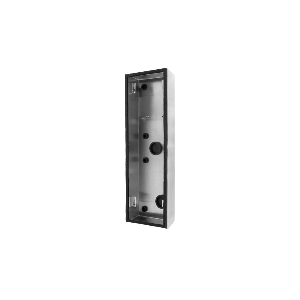 The DoorBird D2102KV SMB is the surface-mounted box for the D2102KV system. The housing is made of brushed stainless steel V4A.