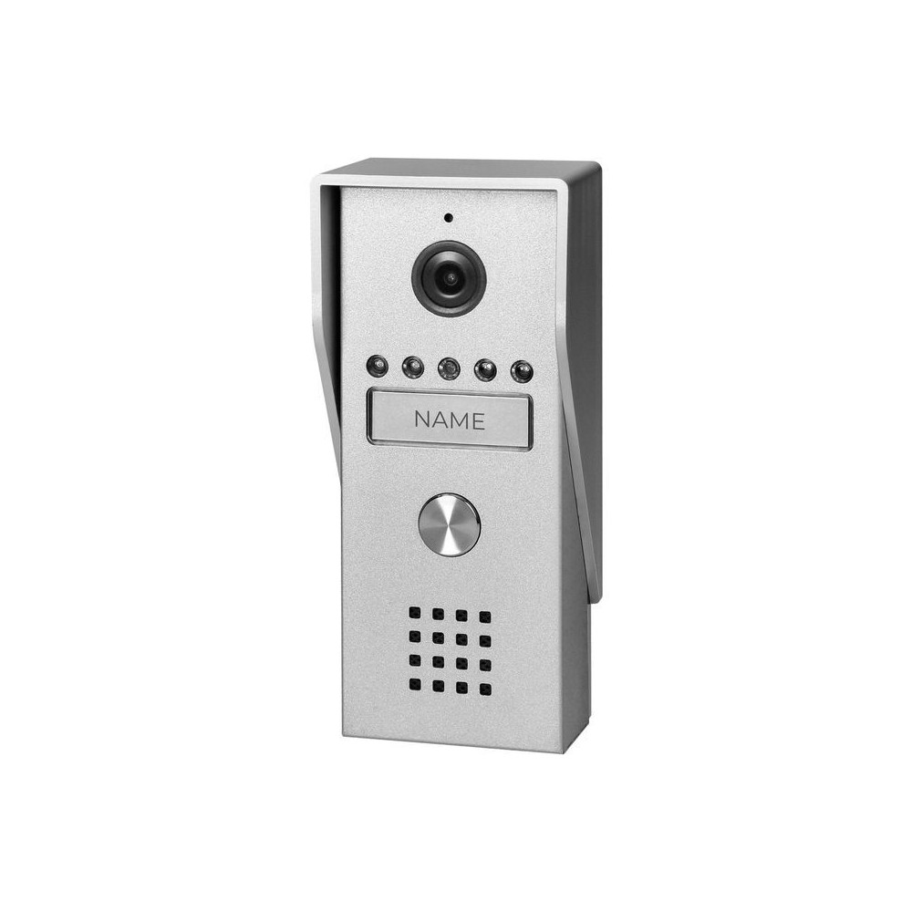 Video door intercom with speakerphone. Simple and convenient to operate. Suitable for single-family homes, entrance control and enables communication between house residents and their guests. Camera with a horizontal viewing angle of 68°. The camera also has a high resistance to violence / mechanical damage. The panel with the camera is designed for surface mounting and is made of aluminium. It is dust and moisture resistant (IP44) and has a cover that protects the device from continuous rain and water exposure. The camera has a night mode with a range of 1 metre and a resolution of 700 TVL.