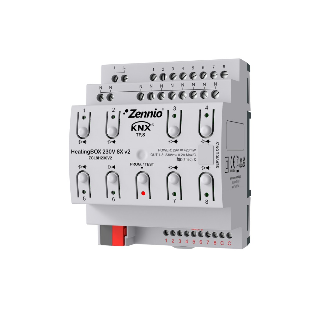Zennio ZCL8H230V2, heating actuator, 8-fold, 230V, short-circuit protection