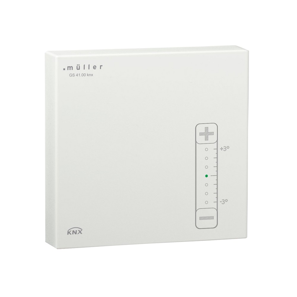 • GS 41.00 knx: manual adjustment of set-point temperature (adjustment range ± 3°C, increment 0,5°) via touch panel