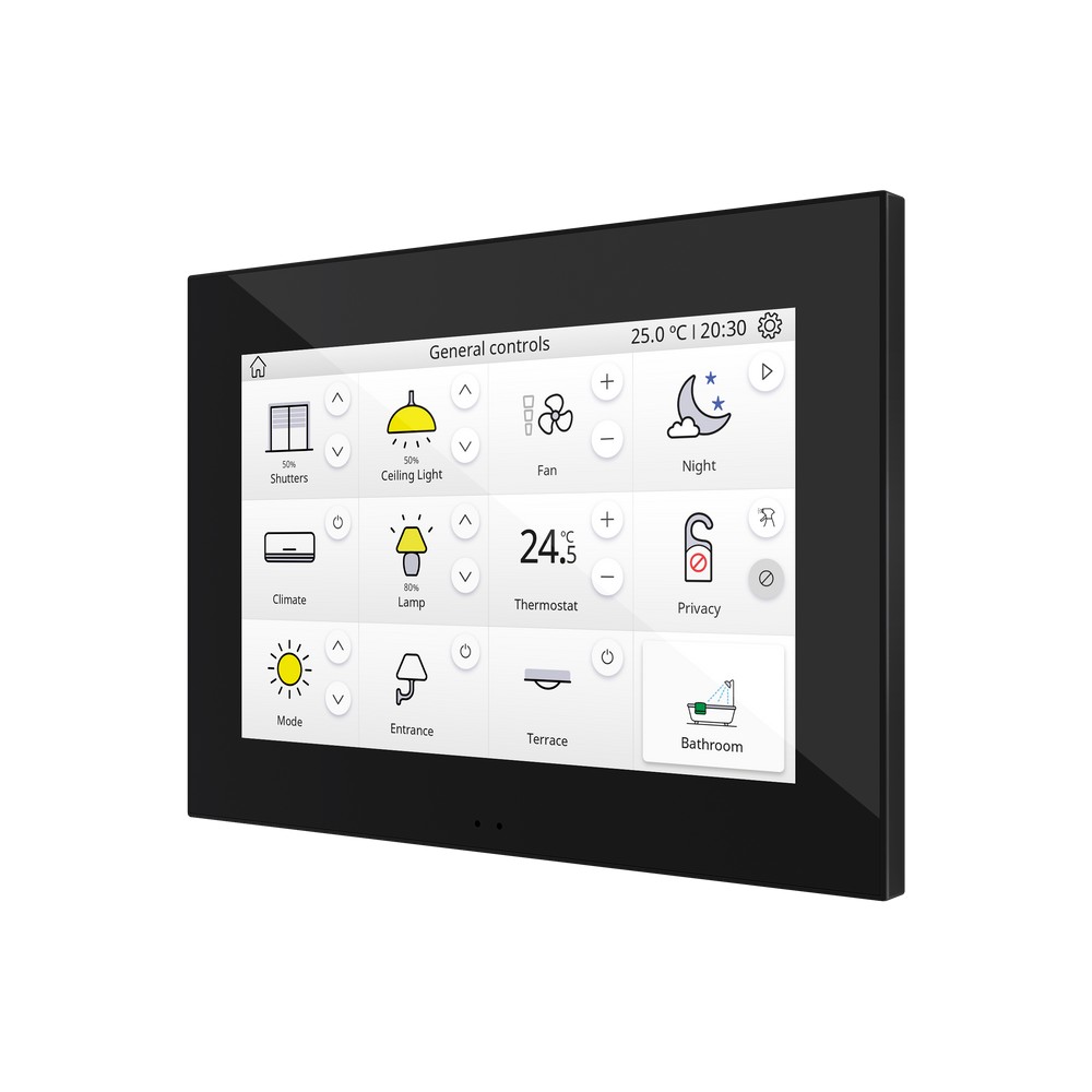 The Zennio Z70 v2 is a 7 inch capacitive full color touch panel for KNX installations, designed for central visualisation and control in smart homes and hotel rooms. Its slim form factor fits neatly into modern, minimalist interiors.
