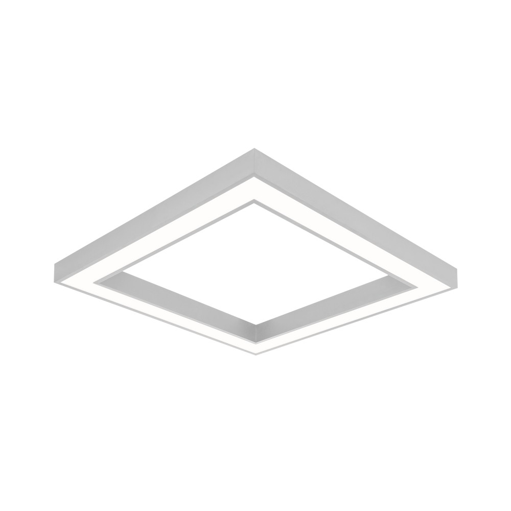 Direct beam LED luminaire, designed as a square. Luminaire housing made of aluminium, grey powder-coated, with a side length of 680 mm or 980 mm. Luminaire wired ready for connection with certified brand driver (ENEC) and high-quality LED system (CRI bigger than 80, 50,000 h). PMMA opal diffuser flush integrated in the luminaire housing, worked on a ferrule.