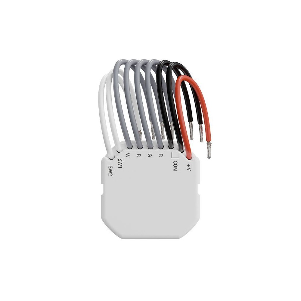 Radio control module for white and colored LED strips and LED bulbs 12V -48 V. uRadio control module for 12 - 48 V DC LEDs Power supply: 12 - 48 V DC 4 channels, load up to 192 W per channel Control of light source 1 x RGBW 4-channel or 1x RGB 3-channel Control of 2 x CW 2-channel white light sources Control of 4 x 1-channel light sources 2 inputs for 1- or 2-switch control Configurable settings for each channel (dimming time, minimum and maximum brightness level) Storage of the last position after a power failure flush-mounted installation