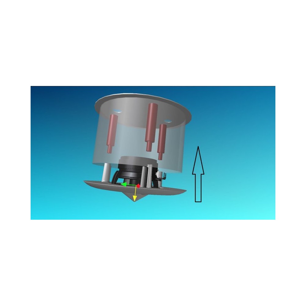 For the CONO alto recessed ceiling loudspeaker, there are several variants of additional enclosures. The flush-mounted box, on the other hand, is used for concrete ceilings. The flush-mounted box is poured into the ceiling and once it has dried out, the CONO alto is simply inserted into the resulting opening and attached to the box.