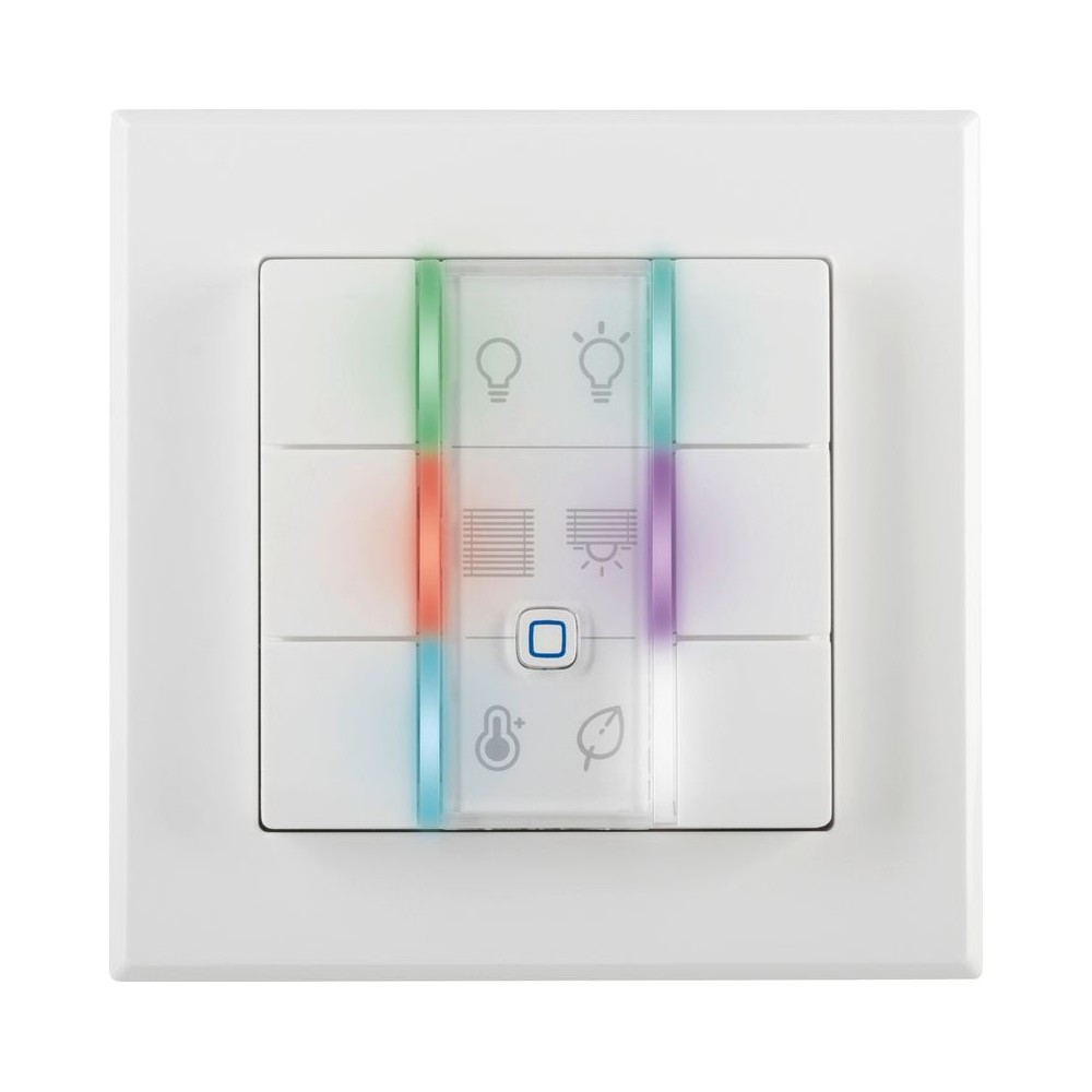 The versatile wall-mount remote control is the ideal solution for any smart home application. Single and multiple functions can be operated simultaneously at the touch of a button. Integrated multicolour LEDs display different states within the smart home.