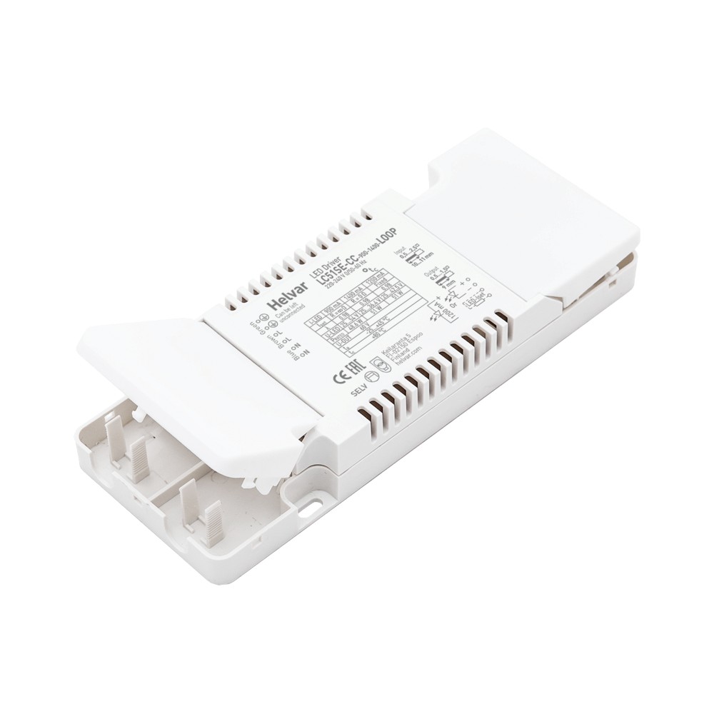 Kompakter Konstantstrom-LED-Treiber, integrierte Zugentlastung, Überlast-, Kurzschluss- und Leerlaufschutz. Ausgangsstrom einstellbar, geeignet für Notlichtanwendungen. Betrieb mit Schutzkleinspannung (SELV) < 60 V. Einfache Montage und Verdrahtung durch werkseitig vor montierten Cinch-Stecker zum Leuchtenanschluss.