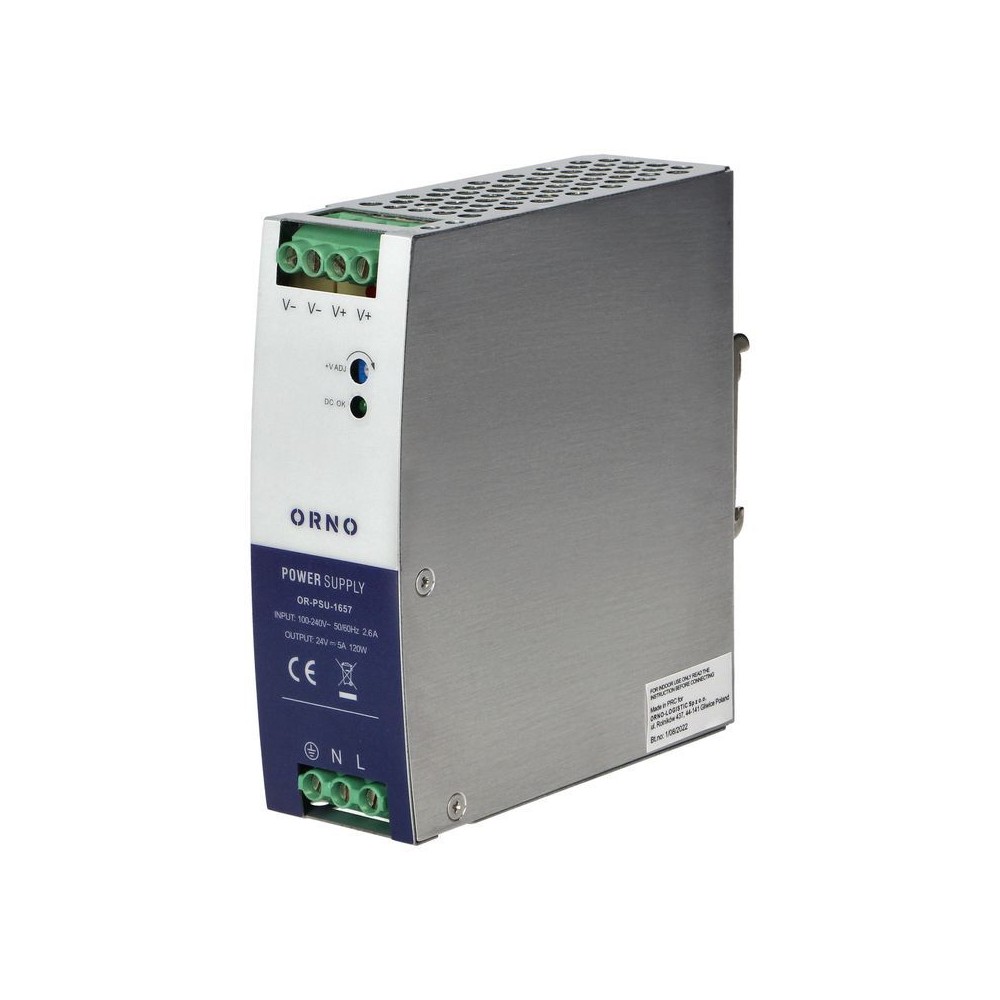 Bloc d'alimentation industriel Orno, 24VDC, 120W, 5 A, rail DIN