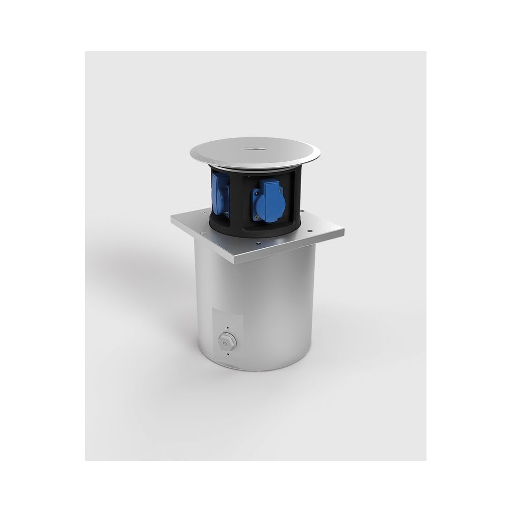 Collecteur d'abaissement/collecteur d'abaissement SV302 pour l'extérieur, en aluminium résistant à l'eau salée. Le collecteur d'abaissement SV302 est accessible en voiture, bien entendu uniquement si le couvercle est entièrement fermé. La surface standard est l'aluminium naturel. Le distributeur vertical est équipé en standard de 4 prises de courant CEBEC avec marque de contrôle VDE. Le boîtier est étanche à l'eau en position fermée, type de protection IP 67. Autres variantes d'équipement sur demande.