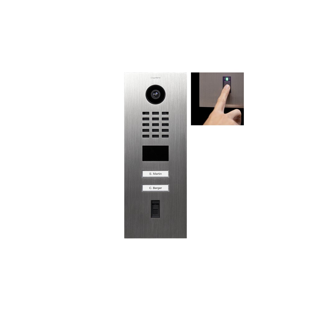 L'interphone IP DoorBird D2102FV est parfait pour une maison à deux logements. L'interphone de porte DoorBird est équipé d'une caméra et vous pouvez recevoir tout visiteur par vidéo à l'aide de l'application, même lorsque vous êtes en déplacement. Vous pouvez faire fonctionner l'ouvre-porte avec le scanner de doigts. Le boîtier d'encastrement est disponible séparément, de même que le bloc d'alimentation.