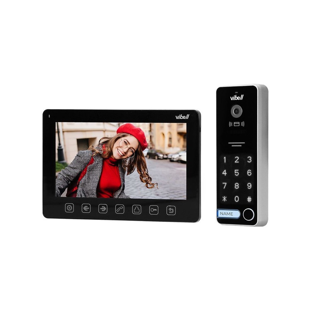 Le kit d'interphone vidéo contient un moniteur LCD multicolore et ultraplat de 7" et une caméra vidéo grand angle très robuste. Aucun Uniphone n'est nécessaire pour la communication entre les tableaux intérieurs et extérieurs. L'appareil dispose d'un menu OSD convivial qui permet de régler immédiatement les paramètres du moniteur. Un éclairage supplémentaire du panneau de commande de la caméra par des diodes lumineuses permet une excellente vision nocturne. L'appareil dispose d'un clavier numérique et d'un lecteur RFID qui permet uniquement aux utilisateurs autorisés de se connecter. L'ensemble permet de contrôler la porte et d'ouvrir la sortie pour la serrure de la porte. Les fonctions supplémentaires nécessitent une source d'alimentation supplémentaire (incluse). Couleurs disponibles : noir et blanc.