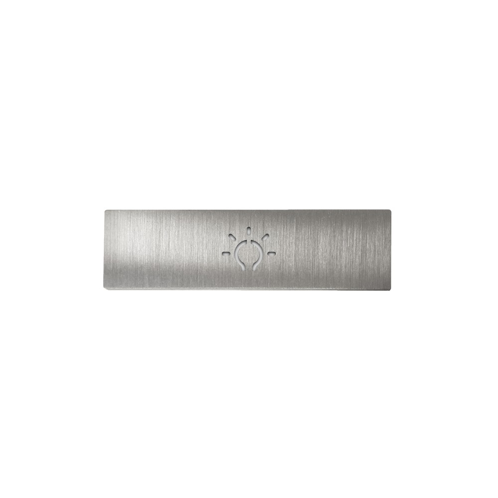 Couvercle de bouton-poussoir lumineux pour un bouton-poussoir lumineux rectangulaire rétro-éclairé blanc pour les platines de rue de la série D21x, en acier inoxydable V4A, brossé, symbole de lampe, gravé à travers le matériau pour l'éclairage.