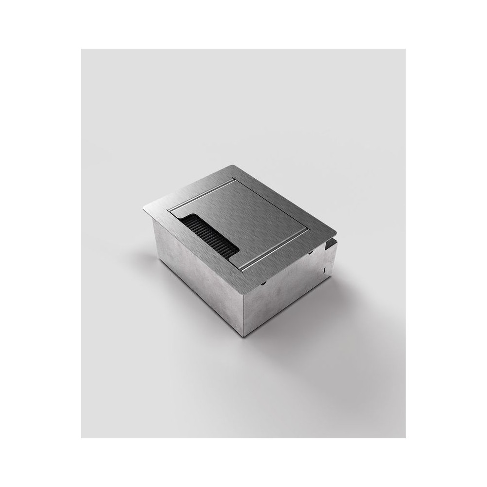Prise de table 3202E composée d'un module de raccordement rabattable en acier inoxydable de 1,5 mm, poli. Le couvercle rabattable se ferme même lorsque les fiches sont enfichées. Pour le montage, le support d'appareils est amovible. Avec une charge de surface de 120 kg, la prise de table 3202E peut également être utilisée comme prise de sol. Elle convient particulièrement aux plans de travail, aux sols creux, aux zones d'exposition, etc. Autres variantes d'équipement sur demande.