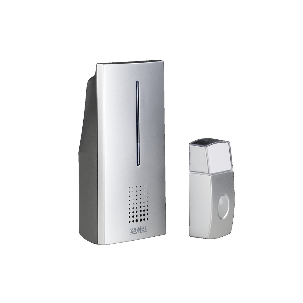 Wireless bell BRILLO three modes: sound, sound + optic signalling, optic signalling does not require doorbell installation bell push with user name operation range: 100 m in an open area possibility of adding two bell pushes to one doorbell possibility of adding any number of chimes to one bell push bell push designed to operate in difficult weather conditions 8 tones (e.g. Westminster, Ding Dong, pipe gong, trumpet and popular melodies) volume level adjustment volume level - max. 76 dB