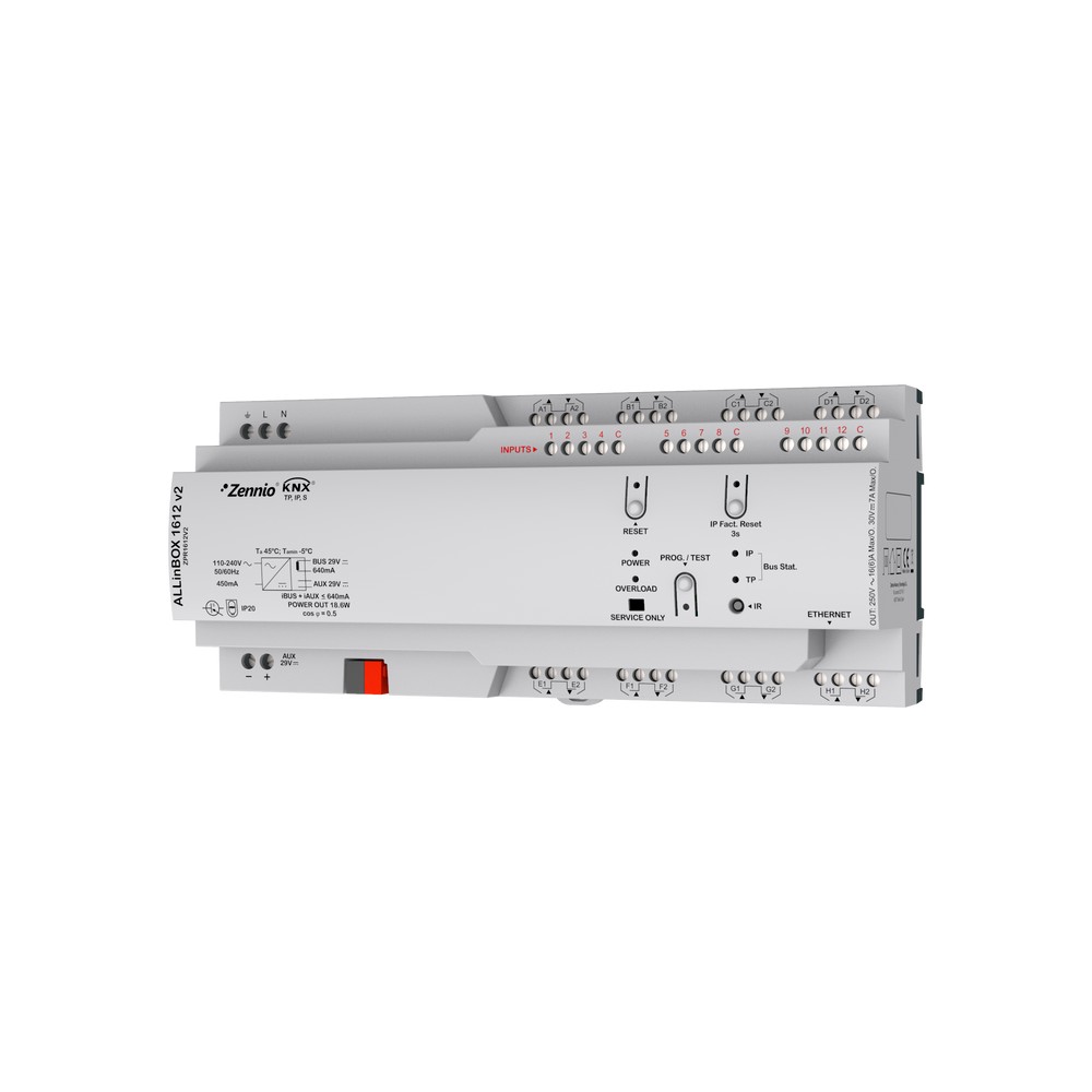 Le Zennio ZPR1612V2 est un actionneur multifonctionnel. Cet actionneur tout en un a 12 entrées et 16 sorties. L'actionneur multifonctionnel nécessite une alimentation KNX de 640mA.