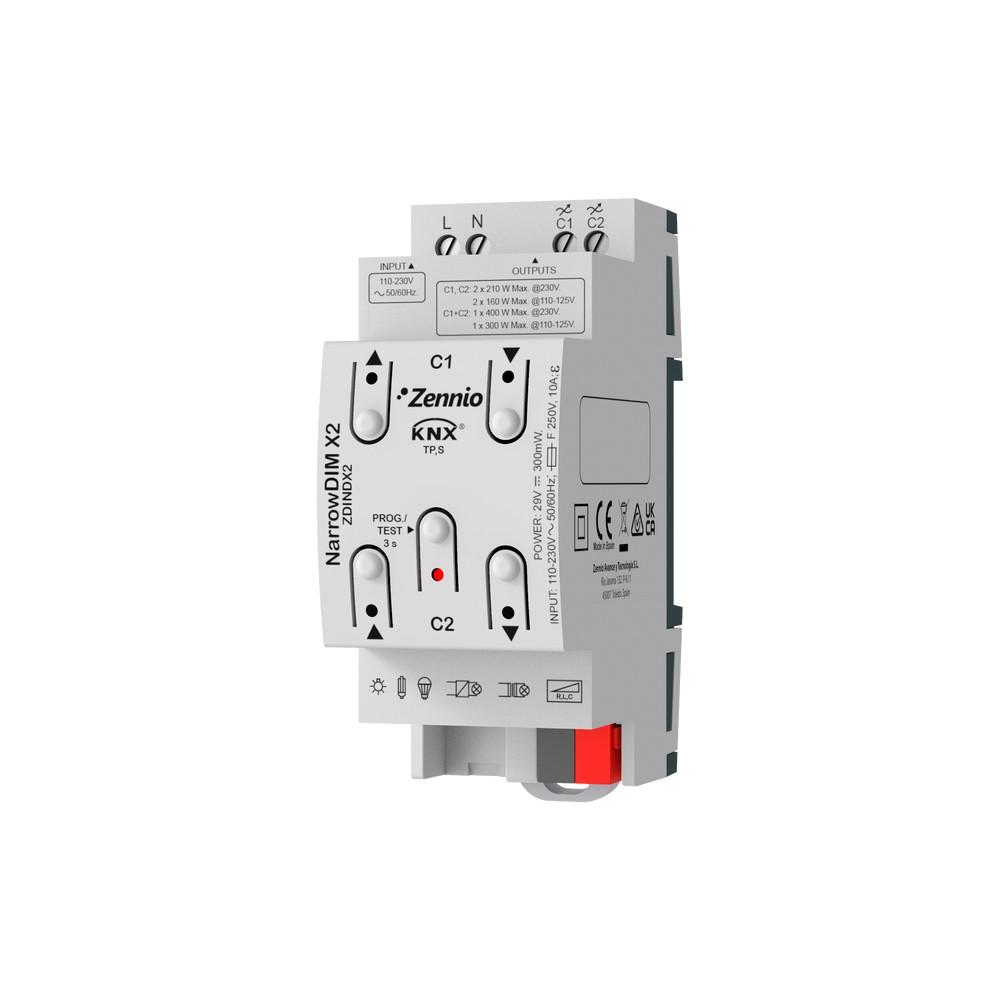 Zennio ZDINDX2, Gradateur universel KNX, 2 canaux, RLC, LED, CFL